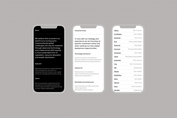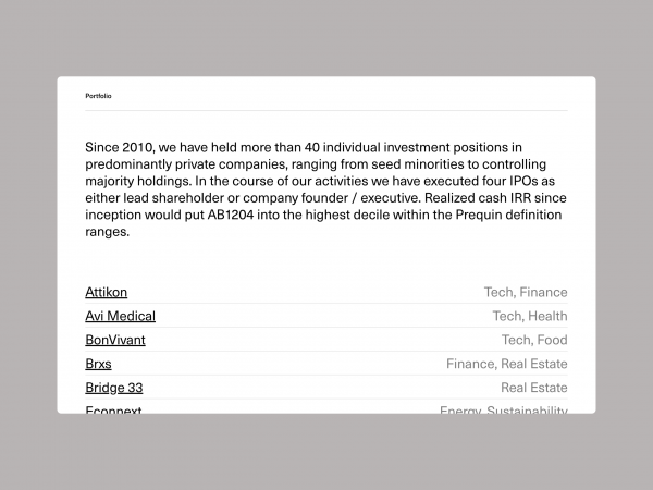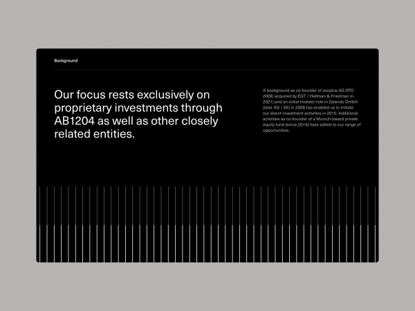 Family office AB1204 asked us to develop a clean, serious and very functional website and identity. The requirement is to create an impact that stands the test of time, reminiscent of classic modernist design.