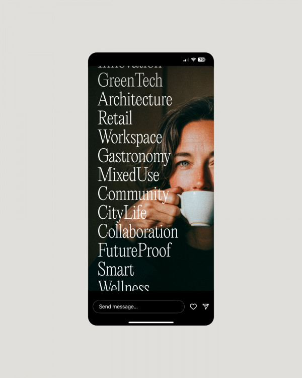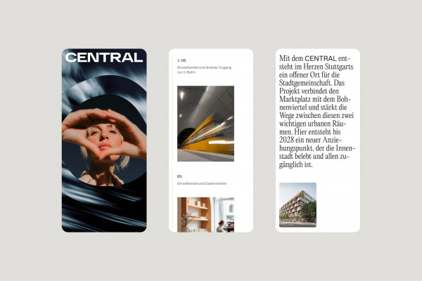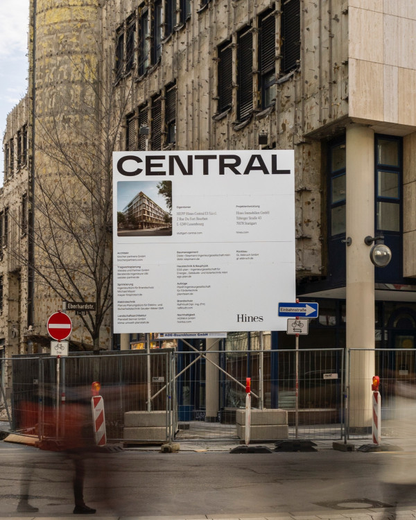 Hines European Property Partners is developing a building in the center of Stuttgart, Germany. The communication concept is based on two principles: future-oriented technology and sustainability at the core of the building, as well as its central location reconnecting two key downtown quarters. We combined these ideas to inform the identity. Organic forms and materials reference the center and the use of natural building materials such as wood, while a crisp and contemporary visual language defines the overall appearance.