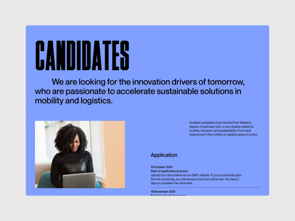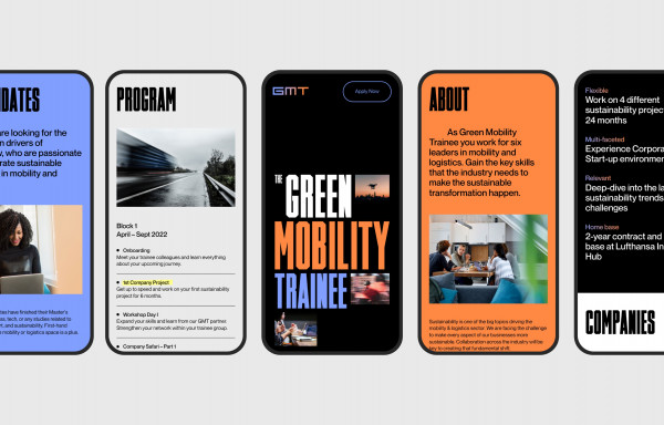 The pandemic has rapidly accelerated the adoption of digital technologies and business models while growing environmental concerns are pushing companies towards more sustainable business practices. Along with 5 other companies in the logistics and mobility sector Lufthansa Innovation Hub has launched a traineeship offering focused on sustainability projects. We supported them with branding, design and code for the application website.