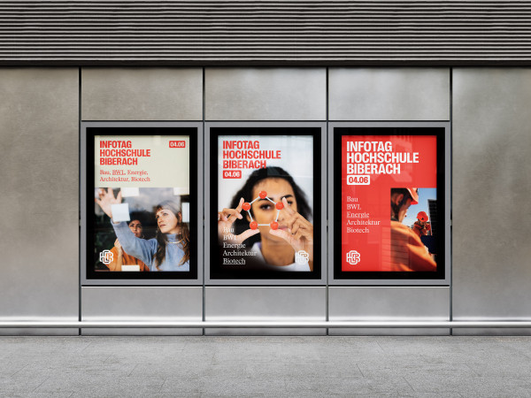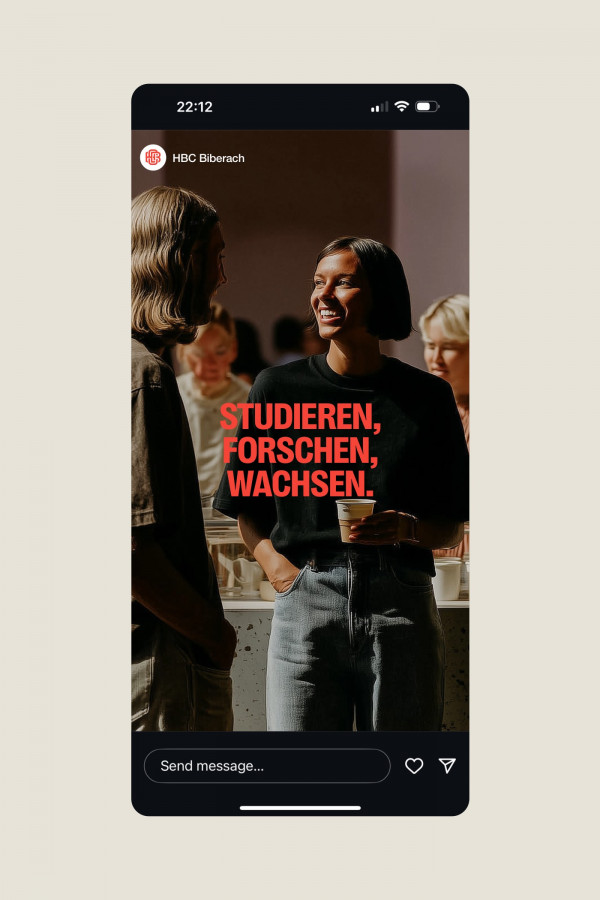 Biberach University of Applied Sciences has a strong academic reputation, but its public image did not reflect this. Communication was complex and fragmented, weakening audience connection. At the center of the new design is the HBC monogram, a confident symbol created to rally the university community around a shared vision. Around this core element, we developed a clear and distinctive visual system that balances tradition and progress.