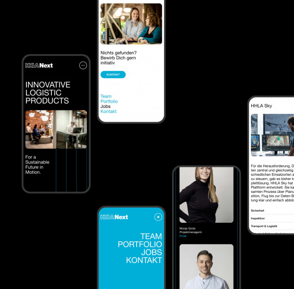 The digital division of Hamburger Hafen Logistik AG tasked us with the development of a new brand identity and website. The challenge was to put a strong focus on digital aesthetics while maintaining established design elements of the parent company.