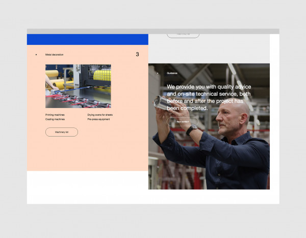 We wanted to capture the context in which the machines are used and took the opportunity to do a photo shooting at a factory for aerosol can manufacturing.